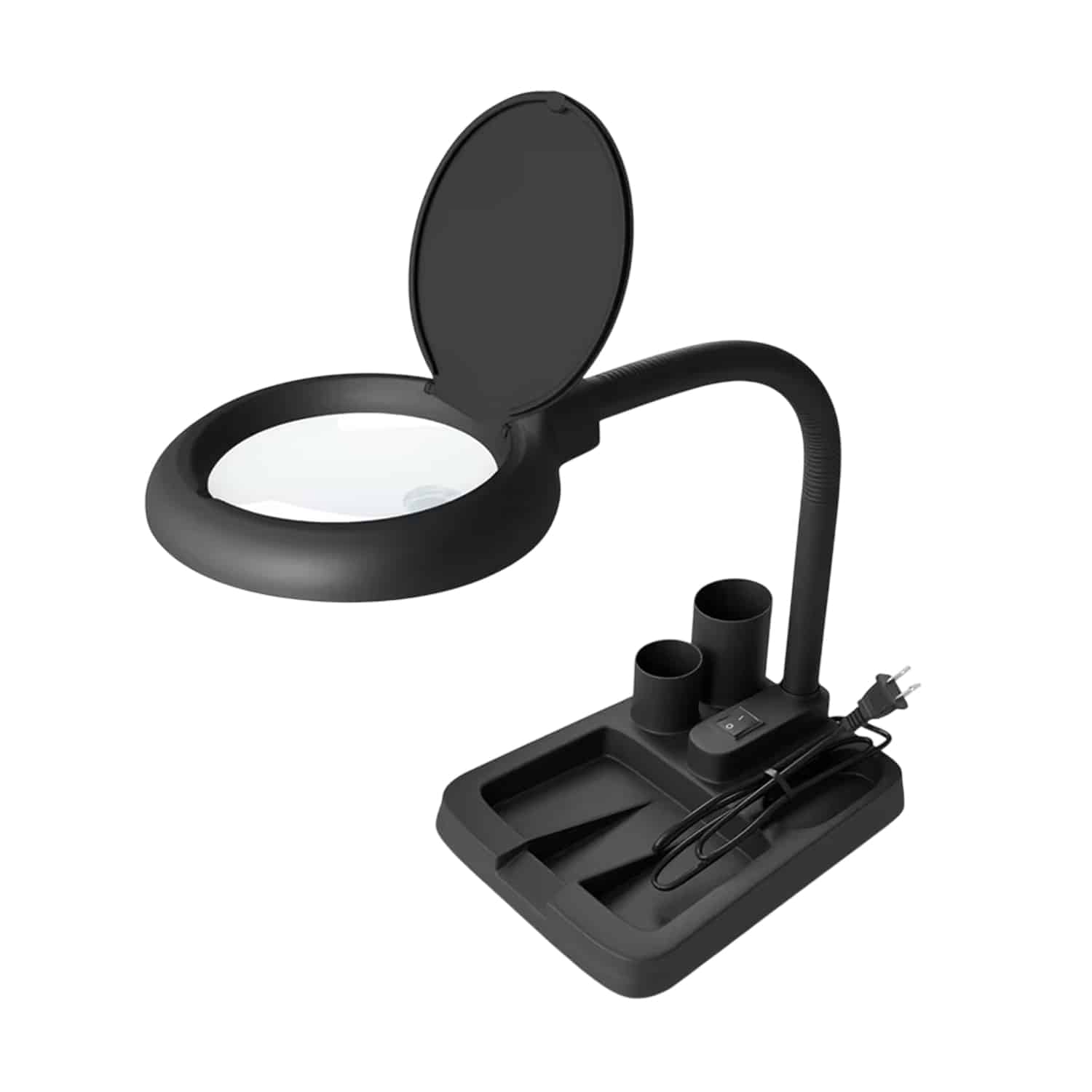 This unit features top-mounted controls that provide effortless brightness adjustment without bending or reaching. The optical-grade glass lens maintains clarity across its entire surface, ideal for reading or detailed crafts.